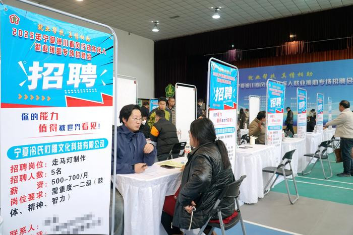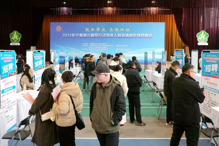 宁夏新闻网讯(记者金文阳文/图)2月28日,由宁夏回族自治区残疾人联合会主办,宁夏回族自治区残疾人劳动就业服务中心、银川市残疾人联合会、银川市人力资源和社会保障局承办的2025年宁夏银川春风行动残疾人就业援助专场招聘会在银川残联文体中心举办,65家优质用工单位提供349个岗位就业机会,吸引了来自全区各地的4000余名求职者踊跃参与。
